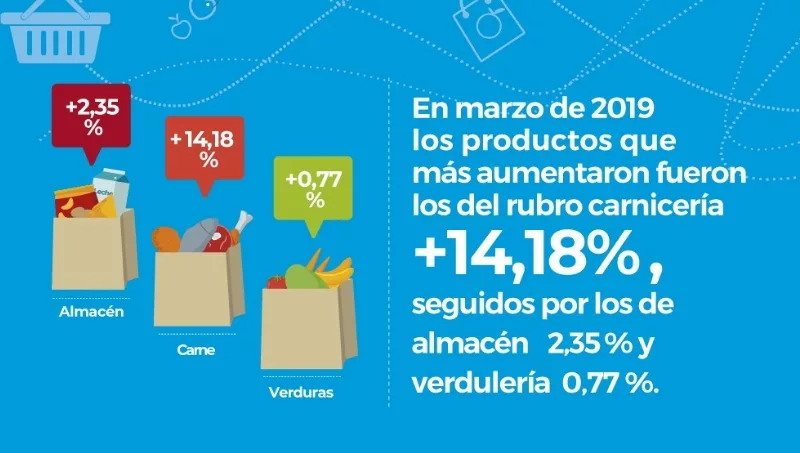 Siempre de acuerdo a sus mediciones, durante el último mes los rubros que más aumentaron fueron: Carnicería (14,18%), seguido por Almacén (2,35%) y verdulería (0,77%).