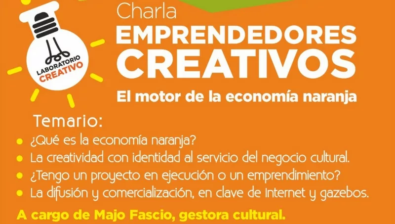 Esta iniciativa se llevará adelante a partir de hoy con la charla gratuita “Emprendedores creativos son el motor de la economía naranja”, a cargo de la gestora cultural María José Fascio, de 16 a 19 en el Teatro Municipal. En la oportunidad se abordarán cuatro consignas: