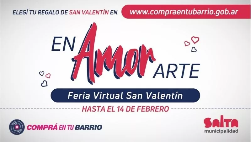 La Municipalidad de Salta implementó en la plataforma CompráentuBarrio la feria virtual EnAmorArte con participación de emprendedores y artesanos locales que ofrecerán productos especialmente pensados para regalar el próximo 14 de febrero, día de San Valentín.