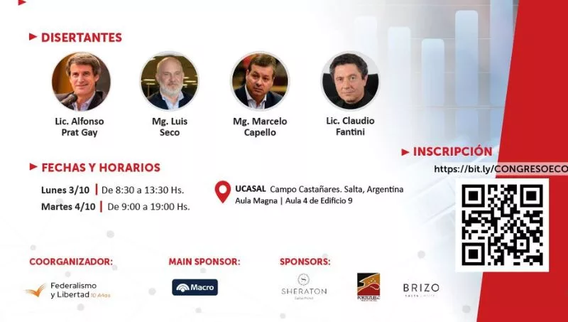 El martes 4 de octubre, el rector de la Universidad Católica de Salta, Rodolfo Gallo Cornejo, realizará la apertura oficial. En la jornada se realizarán dos mesas redondas, una con empresarios referentes de los principales sectores económicos de Salta y la otra con economistas del Noa.