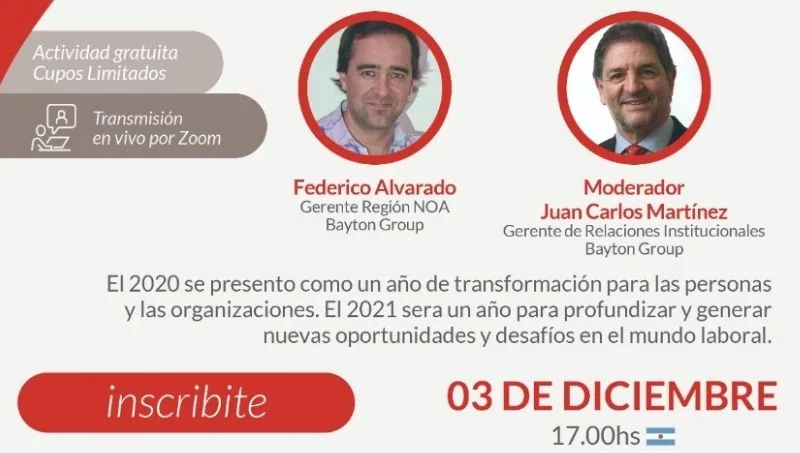 El empleo en la minería es uno de los sectores más dinámicos en la economía salteña. Y miles de jóvenes aspiran a ingresar en ese mercado laboral que, aunque sacrificado, es uno de los mejores remunerados en la región. Para hablar del tema, hoy a partir de las 17 se realizara vía zoom el último encuentro del año sobre “Desafíos de Empleo y Minería 2021” liderado por Federico Alvarado, gerente Regional NOA de Bayton y la moderación de Juan Carlos Martínez, gerente de RRII de Bayton; con el auspicio de IN Salta.