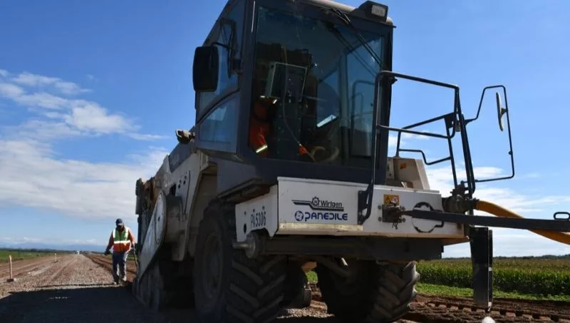 Uno de los principales frentes se desarrolla entre los kilómetros 960 y 964, hacia el sur de Los Baños, donde se realizan tareas con una máquina recicladora para recuperar el pavimento reutilizable. A la altura del kilómetro 965 avanza la reconstrucción de cordones y en el kilómetro 885 se está instalando una nueva carpeta asfáltica de mayor espesor.