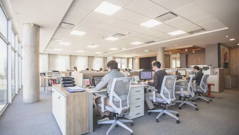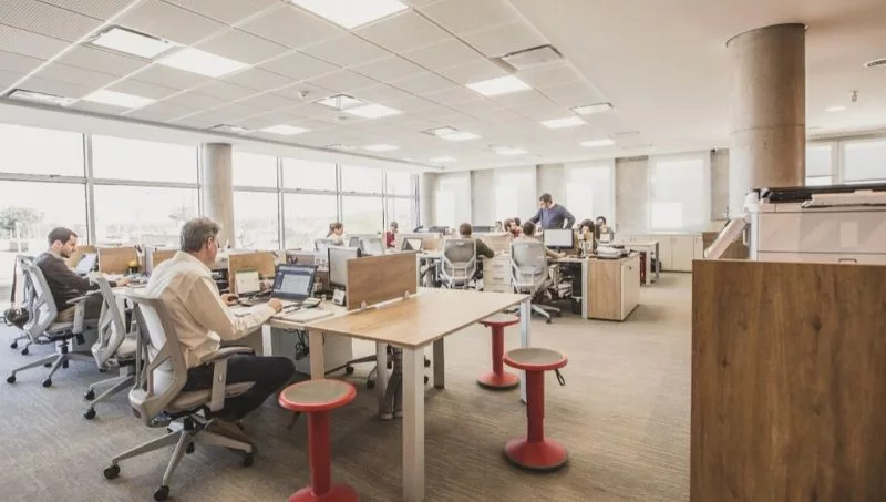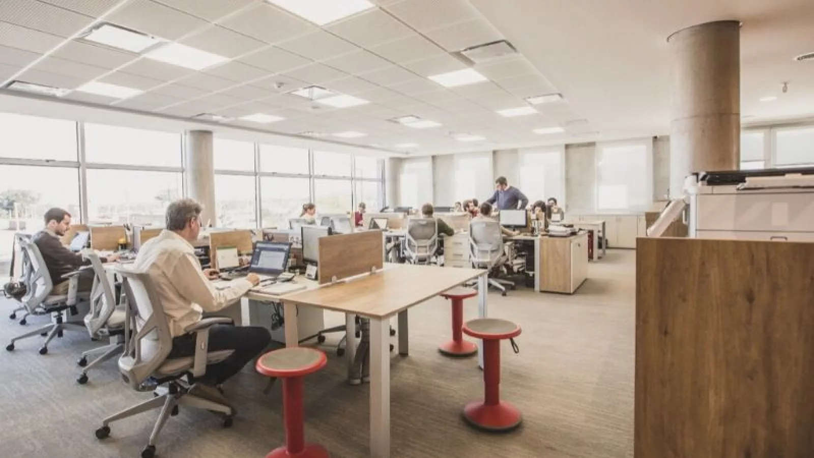 JBV- Más allá del edificio, que alberga a varias empresas, la propuesta de la nueva oficina de Proyecto Norte específicamente, es revolucionaria en términos de gestión del espacio de trabajo, y eso es uno de los aspectos en los que más energía y planificación pusimos. Hemos contratado a un especialista en diseño de espacios de trabajo, que nos asesoró durante el proyecto y la obra. Uno de los puntos más salientes es que la oficina no tiene prácticamente ningún despacho privado, sino que los puestos de trabajo están integrados en grandes mesas compartidas en espacios colaborativos. Para complementar, habilitamos 6 salas de reunión de tamaños y formatos diferentes, tres livings, un bar, una mesa de trabajo tipo café, una cabina telefónica y para videollamadas totalmente isonorizada, etc. De esa manera estimulamos a que las personas se desplacen dentro de la oficina y ocupen los espacios según sus necesidades. Hay momentos en que se necesita concentración, otros en los que se necesita privacidad, en ocasiones es necesario trabajar en equipo, o relajarse en un living. Y para cada necesidad hay espacios suficientes. No hay jerarquías en el uso de los espacios, sino que la prioridad está dada por la necesidad de cada persona en cada momento. Esto es lo más revolucionario y según estamos viendo, ya está mejorando en pocas semanas la comunicación interna, la colaboración dentro de la oficina, etc.
