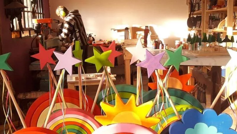 Inspirados en sus hijos Ian y Pedro, crearon juegos en madera que impulsan la creatividad y la imaginación de los chicos. Abordan juegos Waldorf / Montessori sumándole su aporte creativo y detalle de terminación en cada trabajo, buscando el valor y la conciencia por la naturaleza y sus ciclos, por medio de los colores expresar emociones sin perder de vista el juego y la diversión.