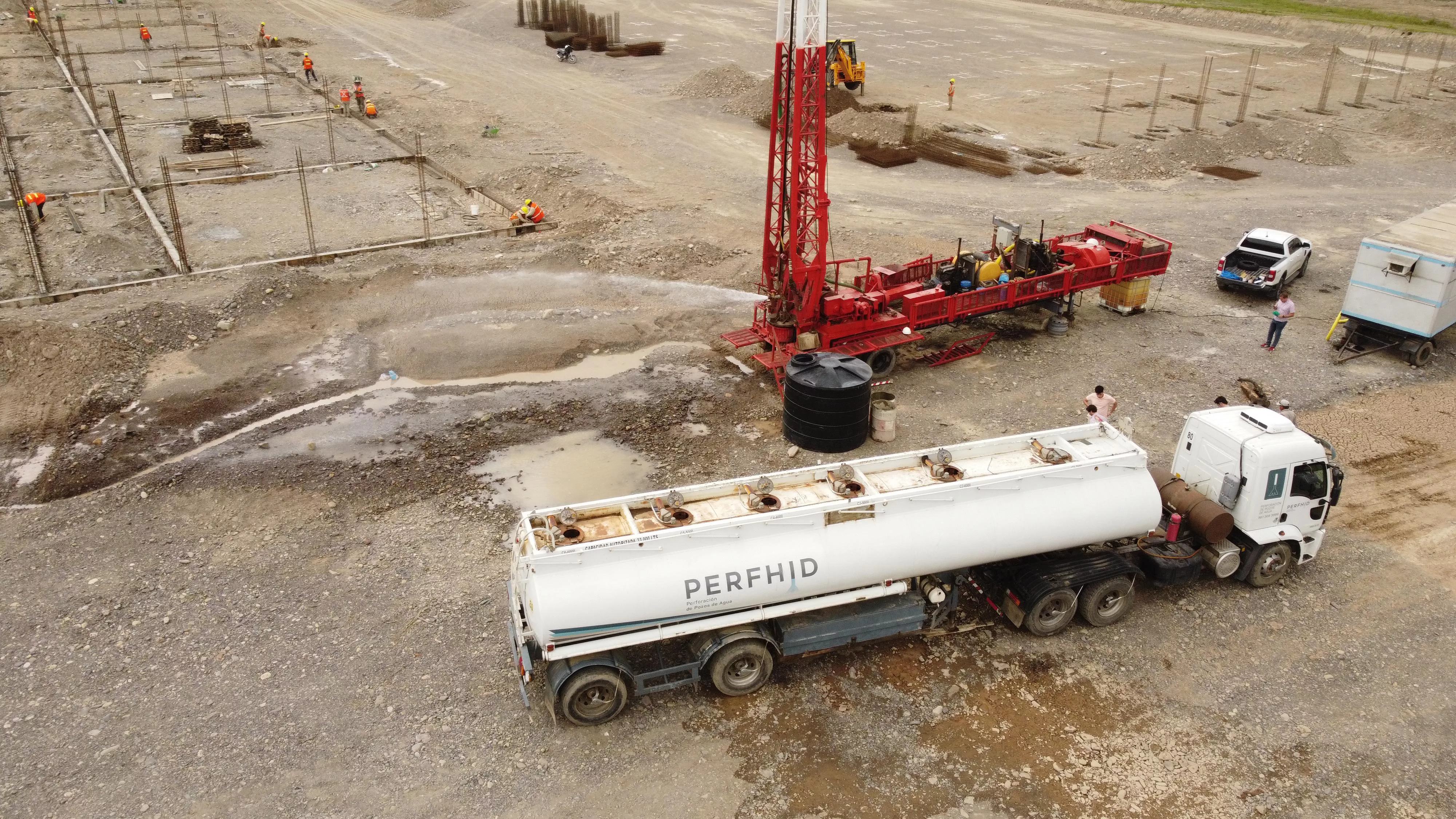 En paralelo, se avanza también con la perforación de un pozo de agua que alcanzará una profundidad de 80 metros, un paso fundamental para garantizar el abastecimiento de este insumo vital en todo el proyecto.