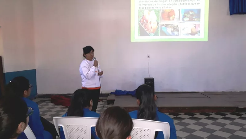 La capacitación realizada en el colegio San Cayetano se concretó con el fin de fomentar la reducción de la generación de los residuos en el relleno sanitario San Javier, logrando aumentar la vida útil del lugar de disposición final de residuos.