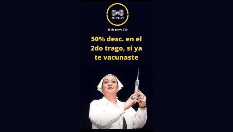 La emblemática confitería Zeppelin se suma en este sentido, y ofrece un descuento del 50% en el segundo trago que consuma una persona que ya cuenta con su carnet de vacunación. “Esta propuesta surge desde la Cámara de Comerciantes Unidos, nos reunimos con el COE oportunamente, ofrecimos brindar beneficios y solicitamos la ampliación del horario de trabajo. Desde la gastronomía hacemos nuestro aporte para que la gente se vacune”, indicó Fernando Zerega.
