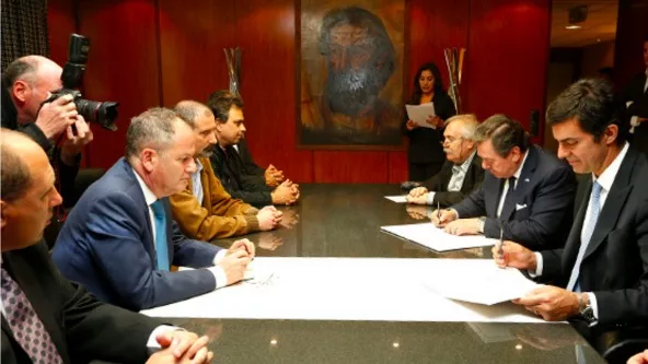 El presidente de la Cámara de Comercio Argentino-Israelí, Mario Montoto; el embajador de Israel en Argentina, Ilan Sztulman; y el gobernador de Salta, Juan Manuel Urtubey; rubricaron en Casa de Salta de Buenos Aires un convenio destinado a fortalecer este intercambio bilateral.