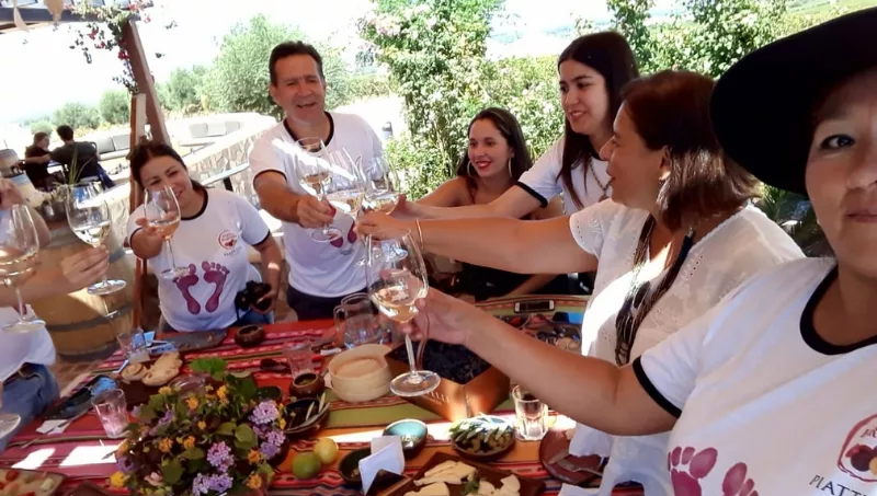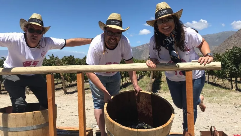 La actividad completa se puede realizar todos los días a las 11 y a las 16 horas e incluye cosecha + competencia de pisado de uvas en equipos + remera de regalo y mesa de fin de cosecha con degustación de los cuatro grandes vinos Piattelli.