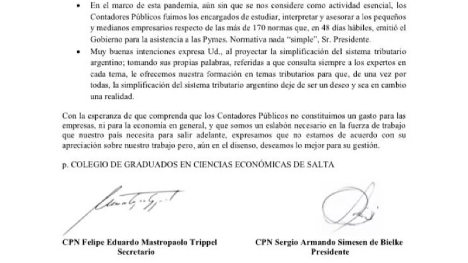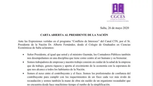 La vicepresidenta del Colegio de Graduados en Ciencias Económicas, Claudia Quintar, comentó ayer la carta abierta que enviaron al Presidente de la Nación, donde manifiestan su desacuerdo con expresiones que tuvo, restándole importancia a la labor de los contadores.