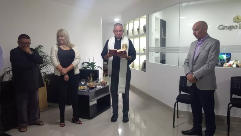 Luego de una palabras del director de la compañía, Edmundo Pieve, se realizó la bendición de las instalaciones y una recorrida por el moderno edificio de San Luis 516, que cuenta con tres pisos que suman un total de 400 metros cuadrados cubiertos, distribuidos en planta baja para la atención funeraria y ceremonial, un primer piso que ofrece un showroom de ataúdes, y un último piso, que cuenta con las oficinas de administración.