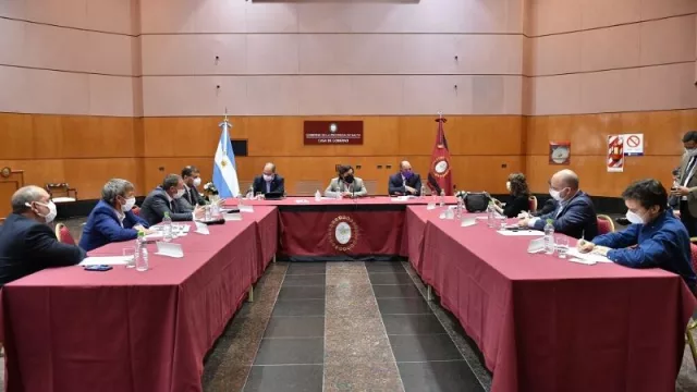 Participaron de la reunión realizada en Casa de Gobierno el ministro de Gobierno, Derechos Humanos, Trabajo y Justicia, Ricardo Villada; el ministro de Economía y Servicios Públicos, Roberto Dib Ashur; la representante de Banco Macro, Josefina Basso; de Banco ICB, Pablo Belbruno; de Banco Patagonia, Luis Guichal; de Banco Galicia, Rodrigo Olmos; de Banco Nación, Pablo Medina y Pablo Pouperre; de Banco Santander Río, Javier Pregot; y de Banco HCBC, Tato Alfarano.