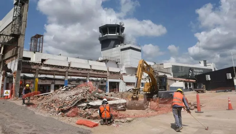 Las tareas actuales incluyen la demolición del área de check in para su ampliación e intervenciones en edificios periféricos: subestación transformadora, portal de ingreso al aeropuerto, sala de bombas, entre otros. “La etapa de demolición ya alcanzó el 50% y seguimos avanzando con los tiempos previstos”, especificó Gabriel Brondino a cargo de la dirección de obra, junto a Ángel López.