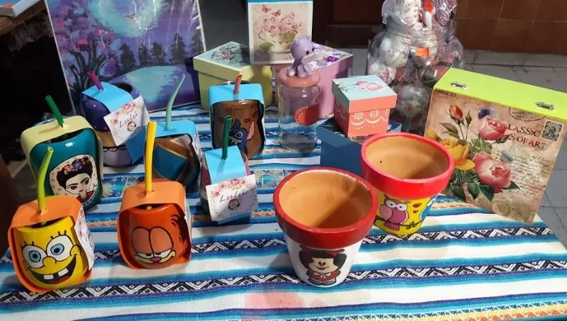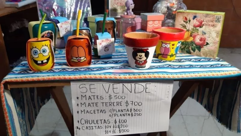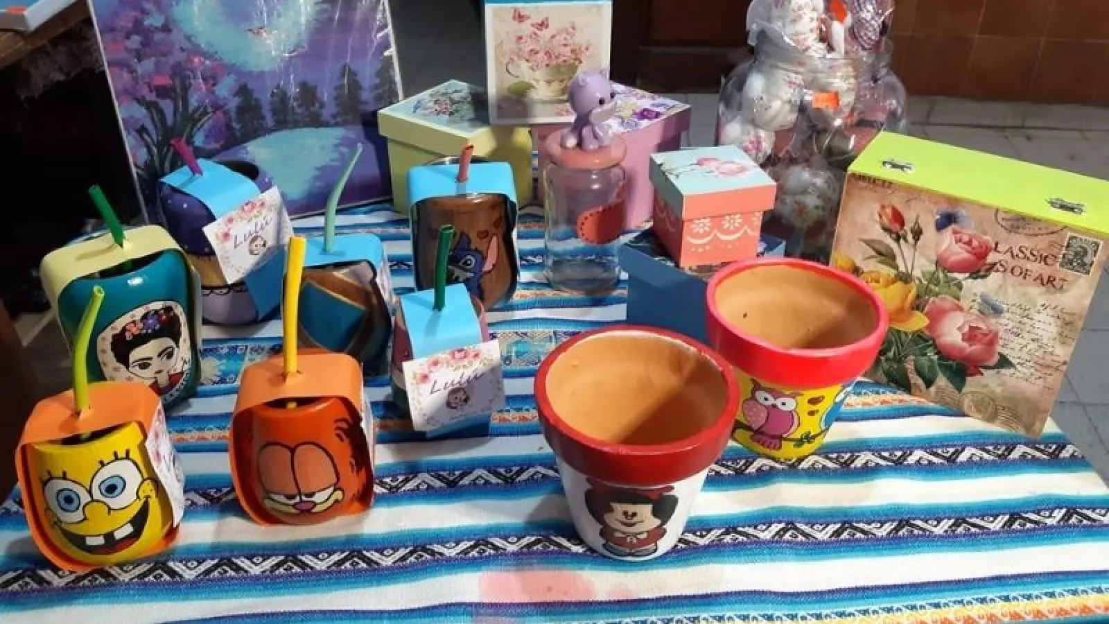 Pero no empezó con los mates y la pintura. Ella quería hacer porcelana fría, lo hizo y pronto se aburrió, ya que es sumamente inquieta. Por esa razón decidió avanzar con mates, cajitas, chuletas para el cabello, frascos con personajes de porcelana y mucho más.