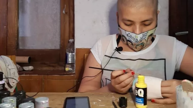 IN Salta la encontró en su espacio, en su castillo de pinturas y colores; creando, imaginando y produciendo. La razón por la que estaba pintando mates es porque, por recomendación médica, debió abocarse a la actividad manual. “Me mordía las uñas y me lastimaba, así que me recomendaron que me dedicara a las manualidades”, nos contó.