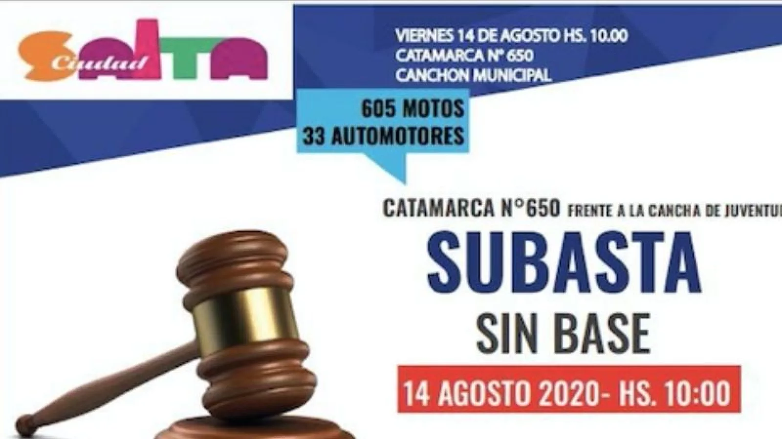 El Colegio de Martilleros Público rechazó la subasta de vehículos y motocicletas que realizará mañana viernes la Municipalidad de Salta. El motivo es la designación de un martillero empleado de la comuna como responsable del remate, acción que, de acuerdo a su estatuto viola la ley que reglamenta la actividad y genera dudas sobre la transparencia de la operación.
