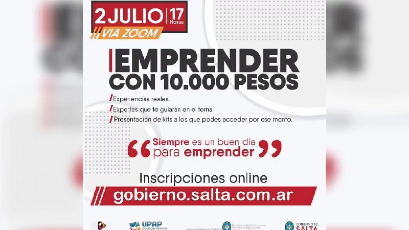 ¿Querés emprender pero tenés poco capital? "Emprender con 10.000 pesos" se llama la capacitación virtual y gratuita que se dictará para todos aquellos que respondieron si a esa pregunta. La actividad se llevará a cabo mañana jueves 2 de julio a partir de las 17, vía Zoom. Los interesados en inscribirse podrán hacerlo de forma gratuita a través del link.