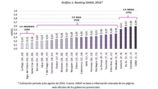 Si bien la medición es general y deja muchos aspectos para analizar con mayor rigor, desde el Iaraf afirman que “muchas jurisdicciones sorprendieron por su muy buena performance relativa en algunas componentes, aunque otras quedaron muy atrasadas”.