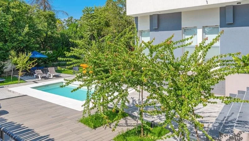 Además, en el jardín se encuentra la piscina y un jacuzzi al aire libre que invita a pasar un día de absoluto deleite.