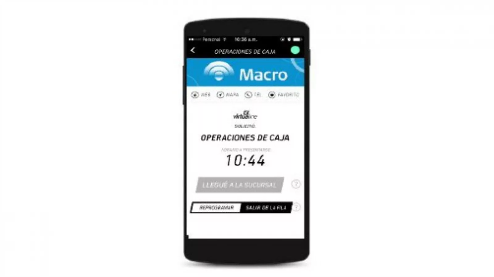 La App está conectada on-line con el sistema que administra las filas de los trámites que se realizan en cada sucursal de Banco Macro.