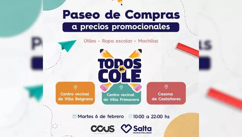 En tres puntos de la ciudad se desarrollan hoy los paseos de compras “Todos al cole”, en donde vas a encontrar los productos que necesitás para el inicio de clases a precios accesibles. Se trata de una iniciativa de la Municipalidad de Salta junto a la Cámara Comerciantes Unidos.