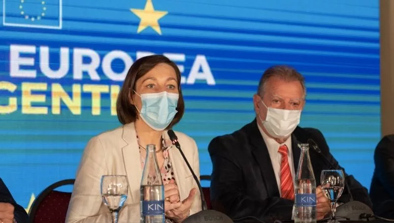 La presentación de los proyectos seleccionados estuvo a cargo de la Embajadora de la Unión Europea en Argentina, Aude Maio-Coliche; el jefe de la sección Cooperación, Luca Pierantoni; el vicegobernador de la provincia, Antonio Marocco; y el Secretario General de la Gobernación, Matías Posadas.