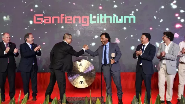 El momento cumbre de la ceremonia oficial, que marcó el inicio de la producción, fue a través del tradicional golpe de gong chino, que estuvo a cargo de Sáenz junto a Xioashen Wang, presidente de Ganfeng Lithium CO.; a quien acompañaron Jason Luo, presidente de Ganfeng Lithium Sudamérica, y el secretario de Minería de la Nación, Luis Lucero.