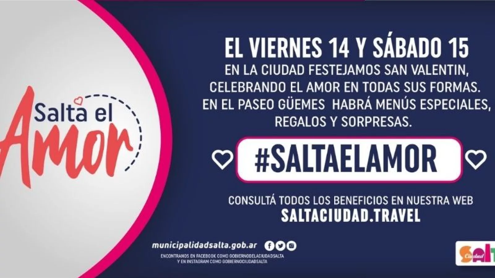 Además, se propone a salteños y visitantes compartir en las redes sociales fotos con la temática del amor, en lugares emblemáticos de la ciudad, con el hashtag #SaltaelAmor y etiquetadas con @turismosla para ser compartidas a través de las redes de la secretaria.