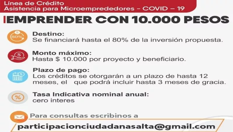 El Gobierno de la Provincia presentó días atrás la línea de crédito de Asistencia a Microemprendedores "COVID 19", que se creó a raíz del interés masivo que presentó el ciclo "Como Emprender con 10.000 pesos", programa de capacitación virtual que se puso en marcha en mayo pasado como una guía para que nuevos emprendedores aprendan sobre planificación, estudios de mercado y la manera de invertir de forma segura.