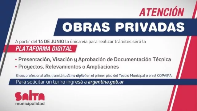 La digitalización de procesos y trámites tomo especial relevancia en un contexto de pandemia, en este sentido la Municipalidad de Salta anunció que se está avanzando en la generación de una plataforma para agilizar, simplificar y generar mayor eficiencia y transparencia de los trámites de obras privadas en la ciudad.