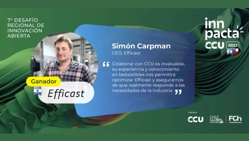 El concurso internacional CCU Innpacta continúa consolidándose como un espacio de impulso a la innovación, la sustentabilidad y la colaboración entre empresas y startups. Este año, el proyecto ganador fue de la startup argentina Efficast, quienes por este logro, obtuvieron un premio de US$ 10.000 y la oportunidad de colaborar con CCU en el desarrollo de un piloto para su innovación.