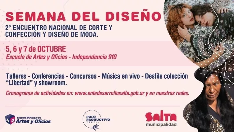 La Municipalidad de Salta, a través del Ente de Desarrollo Económico, Formación y Capacitación para la Promoción de Empleo, organiza para los días 5, 6 y 7 de octubre la Semana del Diseño a desarrollarse en la Escuela de Artes y Oficios.