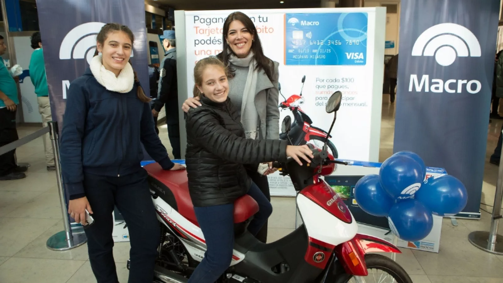 La acción consiste en que cada 100 pesos gastados con la tarjeta Visa Débito de Banco Macro, el cliente suma una chance para el concurso que otorga una moto y 2 Smart TV por mes. El concurso finaliza el 30 de noviembre.