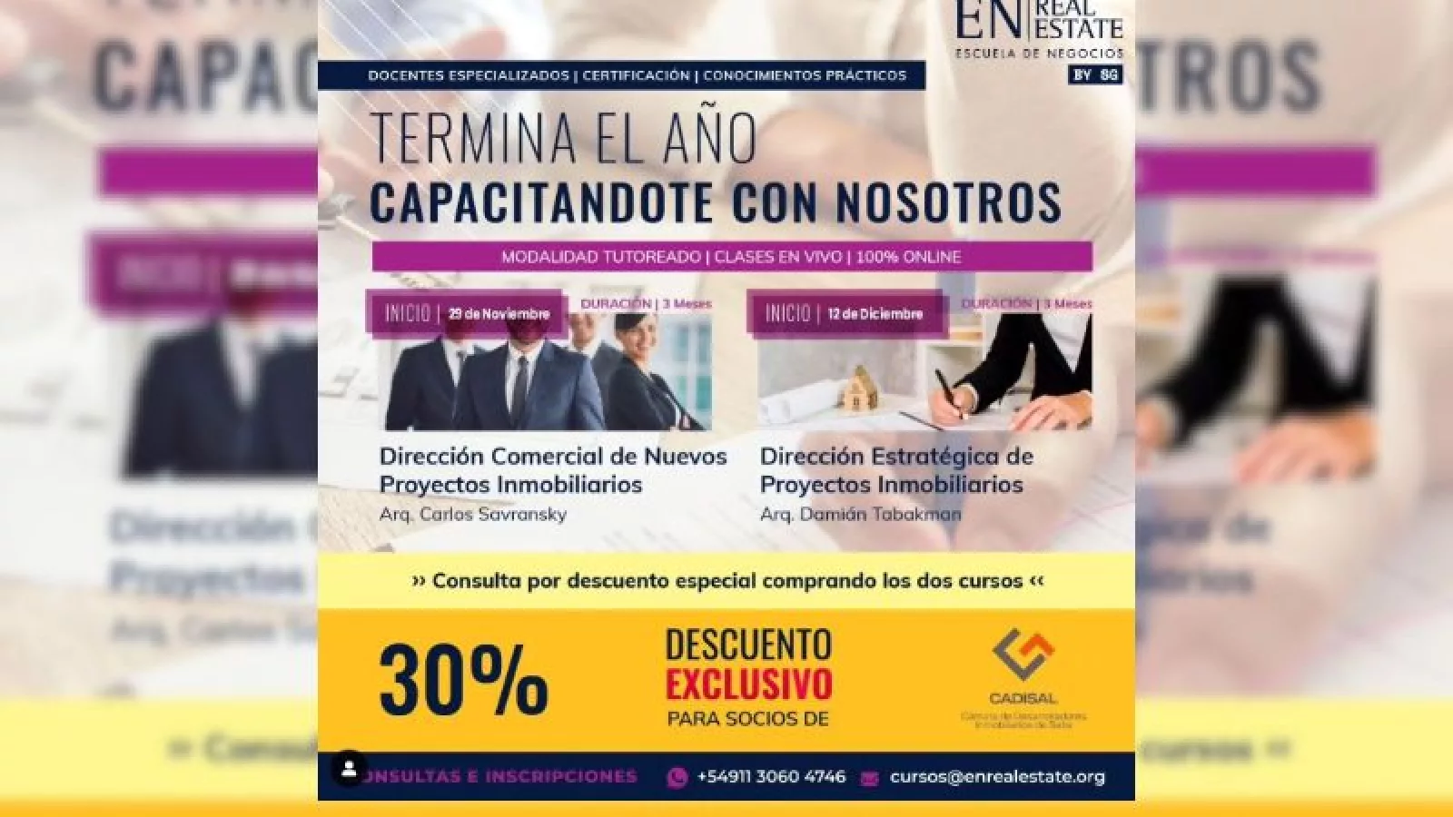 La Cámara de Desarrolladores Inmobiliarios de Salta (Cadisal) se sumó a la propuesta de la Escuela de Negocios EN | Real Estate de cerrar el 2023 con los dos últimos cursos de capacitación del año con especialistas del rubro. En la convocatoria se resalta la necesidad de sumar herramientas para expandir los proyectos inmobiliarios.