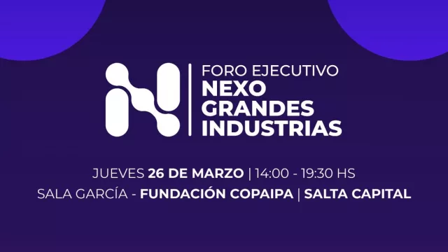 El jueves 26 de marzo se realizará en Salta el Foro Ejecutivo Nexo “Grandes Industrias”, una jornada que reunirá a referentes para analizar los nuevos desafíos de la minería, el agro y la industria. Habrá cupos limitados