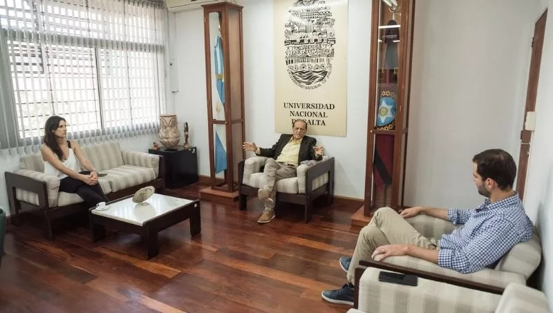 Luego de conversar con Claros, Estrada y Calletti, visitaron la Facultad de Exactas, junto con el decano, Daniel Hoyos; y el Campo Experimental del INENCO (Instituto de Investigaciones en Energía No Convencional).