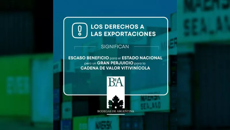 Bodegas de Argentina, la cámara empresarial que agrupa a más de 250 bodegas y empresas proveedoras del sector vitivinícola, manifestaron a través de un comunicado la profunda inquietud de sus asociados por el Proyecto de Ley de Bases y Puntos de Partida para la Libertad de los Argentinos que debate el Congreso de la Nación. Puntualmente señalaron que “de manera desalentadora (el proyecto) propone la imposición del 8% de derechos a las exportaciones de vinos amenazando directamente el sustento de cientos de miles de trabajadores”.