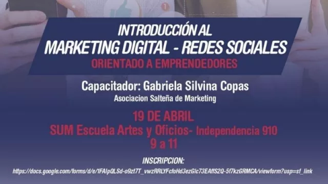 La actividad está a cargo de Gabriela Silvina Copas, perteneciente a la Asociación Salteña de Marketing, invitada por la Subsecretaría de Emprendedurismo y Desarrollo Local, dependiente del Ente de Desarrollo. La capacitación se dictará de 9 a 11, en Independencia 910.