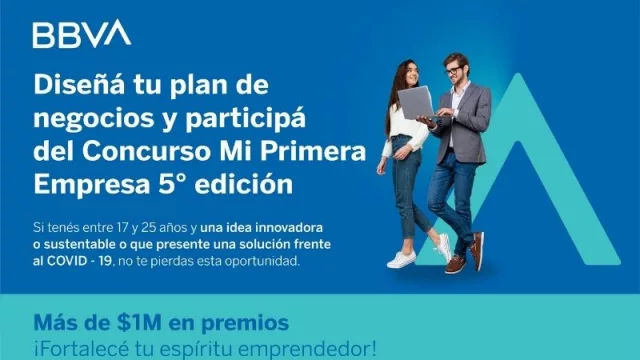 El BBVA decidió extender hasta el 30 de este mes el plazo para ingresar a la quinta edición del certamen Mi Primera Empresa, destinado a jóvenes de entre 17 y 25 años, con el objetivo de desarrollar, motivar y fortalecer el espíritu emprendedor e innovador a través del aprendizaje y de la creatividad. Este año, el certamen entregará $ 1.500.000 en premios.