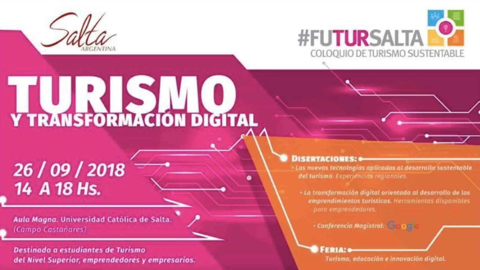 En el marco de las actividades organizadas para conmemorar el Día Mundial del Turismo, hoy, entre las 14 y las 18 hs, tendrá lugar la 4º edición del coloquio de Turismo Sustentable FuturSalta, en el Aula Magna de la UCASAL.