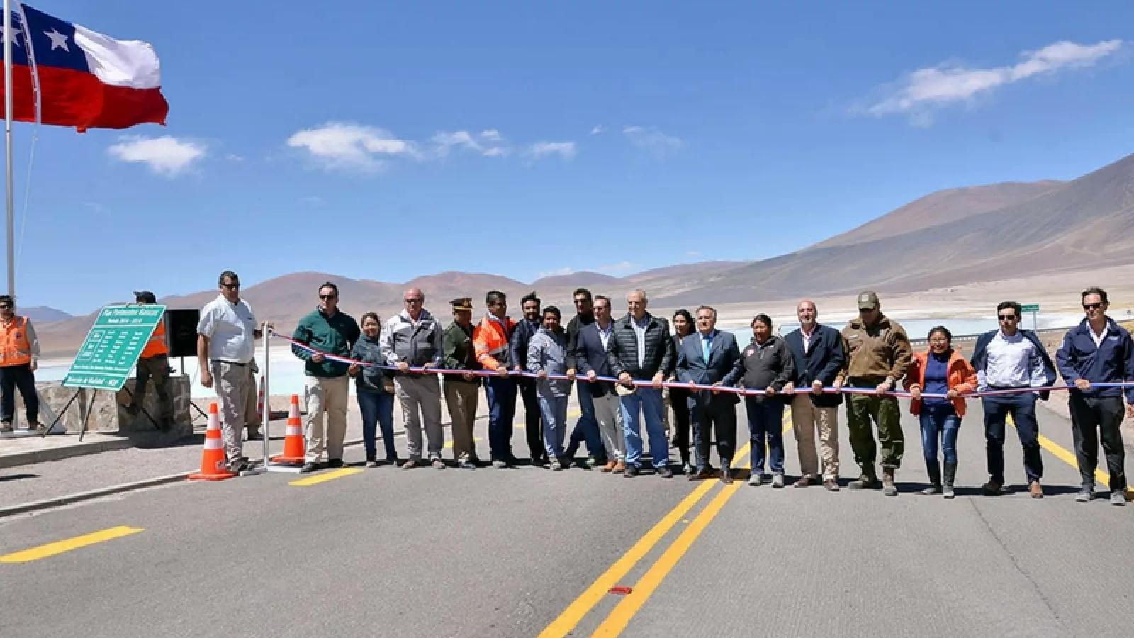 El acto se cumplió ayer en el Mirador construido en el kilómetro 265 de la 23-CH, frente a la Laguna Tuyaíto. Contó con la presencia de autoridades de Salta, Gendarmería, Aduana, Vialidad de Salta, Migraciones, PROSALTA, Cámara de Comercio Exterior de Salta, entre otras. Luego del Corte tradicional de cintas, la comitiva se trasladó hasta el límite en el Paso de Sico, para posteriormente compartir una reunión de camaradería en el sector de Gendarmería Nacional, en el Control Integrado de Sico.