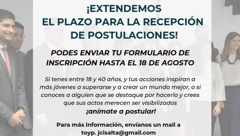 El programa busca llegar a conseguir un número significativo de postulaciones de jóvenes de toda la Provincia, cuyas candidaturas deben tener como soporte entidades empresariales, universidades, ONG’s, pasados TOYPS y otras instituciones. En esta ocasión, las postulaciones cerrarán el día 18 de Agosto.