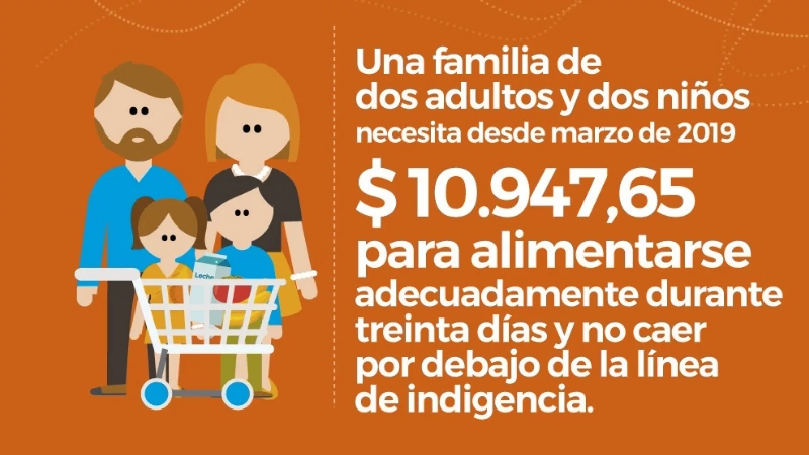 Para cubrir la canasta básica de alimentos durante marzo, una familia salteña compuesta por dos adultos y dos niños necesitó 10.947,65 pesos. Son 630,09 pesos más que los 10.317,56 que necesitó en febrero último, lo que da una variación mensual de 6,11%. Esto es solo para alimentarse durante 30 días y no caer bajo la línea de indigencia.