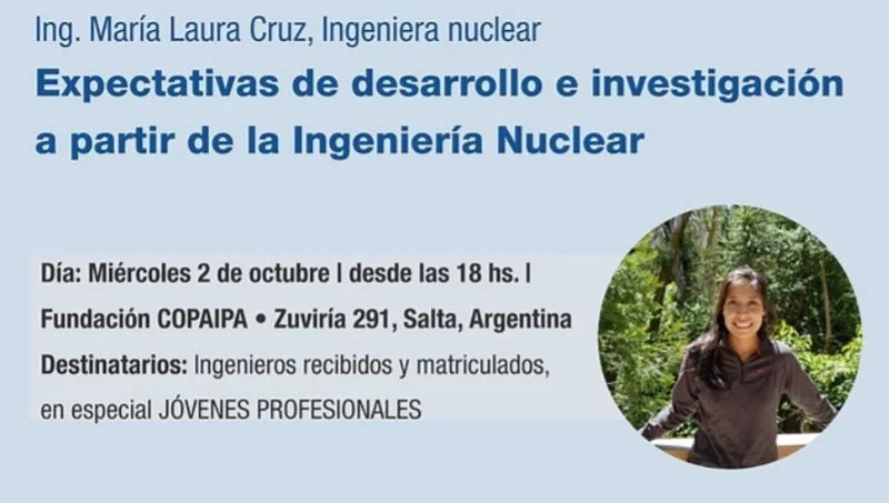 Será una oportunidad valiosa para intercambiar aspectos de la profesión con la primera ingeniera nuclear salteña recibida en el Instituto Balseiro de Bariloche. La entrada es libre y gratuita y los cupos son limitados.