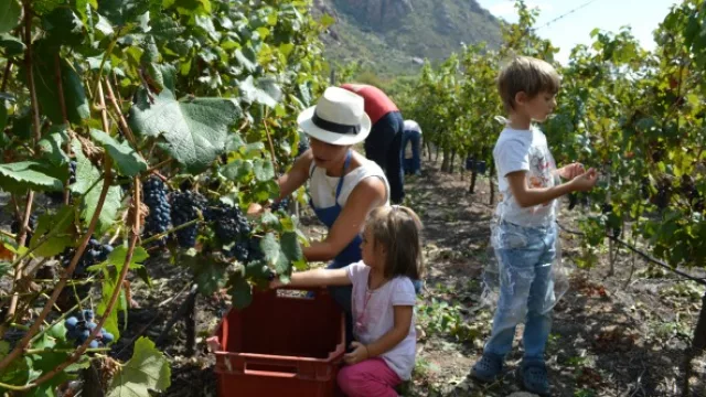 La jornada comenzó con un desayuno acompañado por pastafrola y bollos caseros. Alrededor de las diez se realizó la bendición y a las 11 los participantes se adentraron en el viñedo con guantes, delantales y tijera en mano. Muchas familias con niños pequeños trabajaron en equipo y disfrutaron recogiendo los racimos que luego se llevaron a la bodega para su vinificación.