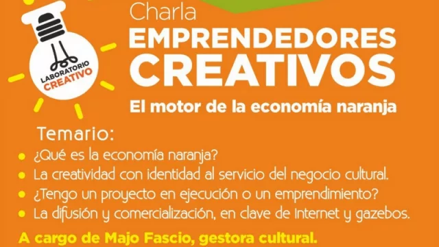 Esta iniciativa se llevará adelante a partir de hoy con la charla gratuita “Emprendedores creativos son el motor de la economía naranja”, a cargo de la gestora cultural María José Fascio, de 16 a 19 en el Teatro Municipal. En la oportunidad se abordarán cuatro consignas: