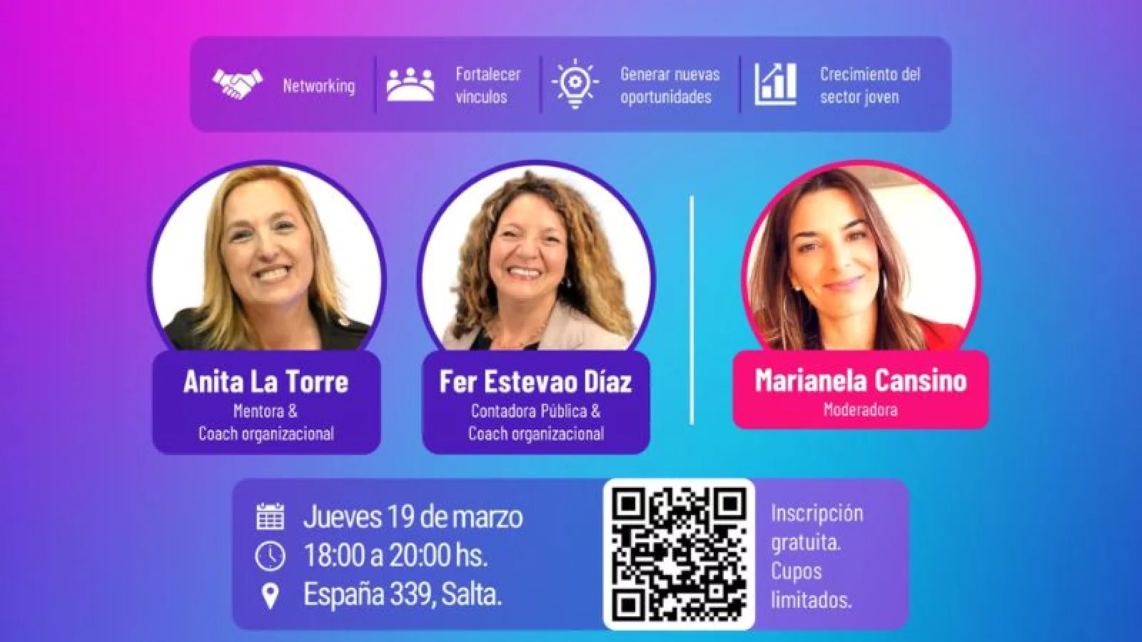 La actividad contará con la participación de Anita La Torre, mentora y coach organizacional, y Fer Estevao Díaz, contadora pública y coach organizacional, quienes compartirán experiencias y herramientas vinculadas al desarrollo de modelos de negocios sostenibles y a la conducción efectiva de equipos de trabajo. La moderación estará a cargo de Marianela Cansino.