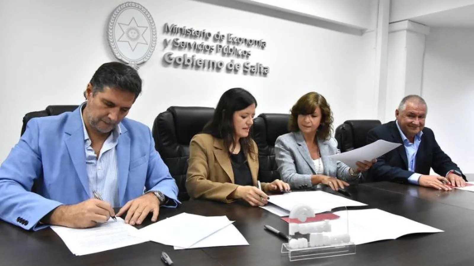 Participaron de la firma del convenio de ayer la secretaria de Ingresos Públicos, Soledad Claros, el secretario de Comercio e Industria, Nicolás Avellaneda, la gerente Divisional de Banco Macro, Jorgelina Basso y el presidente de la Cámara de Comercio e Industria, Gustavo Herrera.