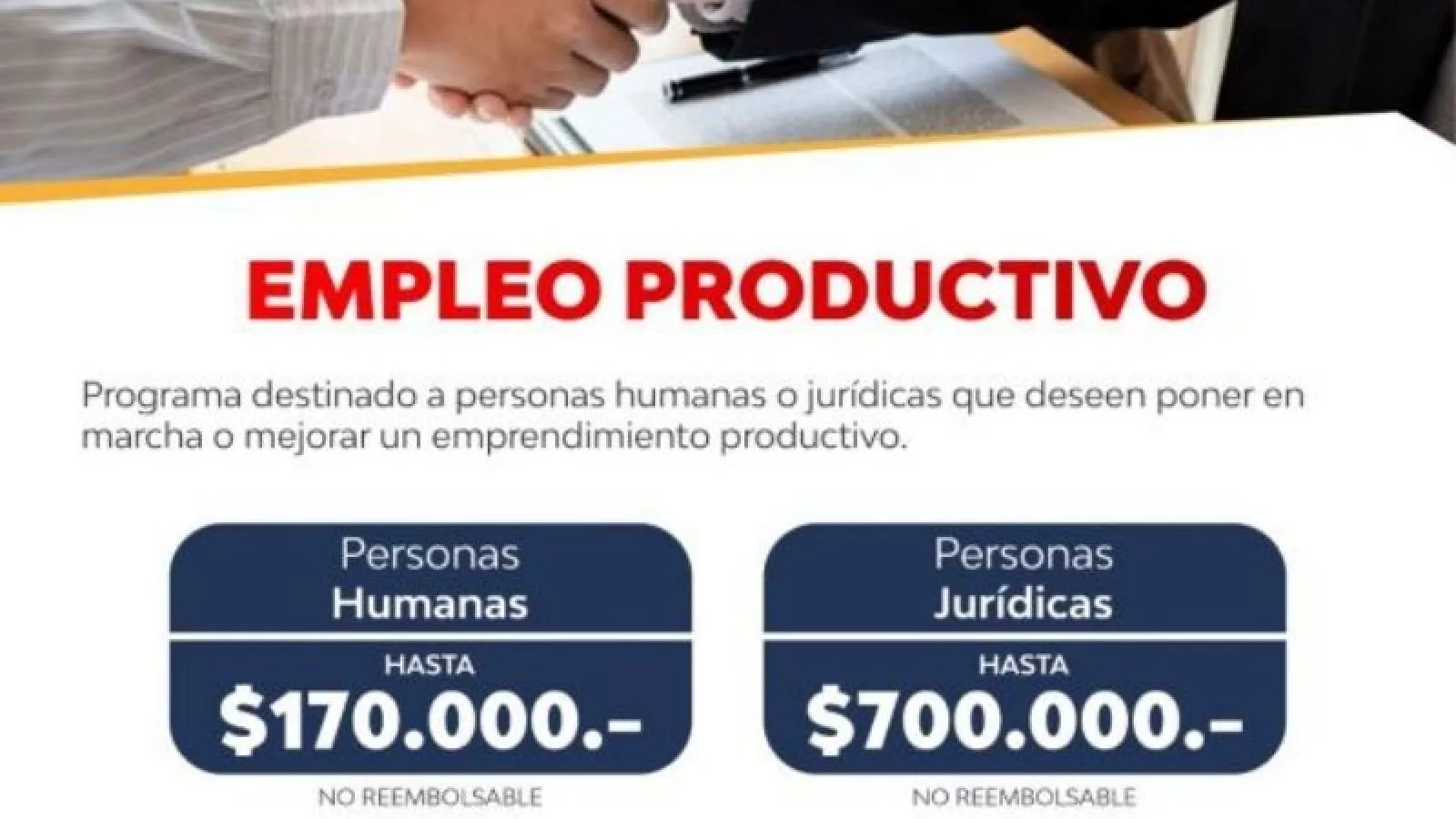 Para los emprendedores que generen puestos de trabajo independiente está dirigida la nueva edición del programa Empleo Productivo. Con préstamos no reembolsables de hasta $ 170.000 para emprendedores y de hasta $ 700.000 para personas jurídicas podrán fortalecer sus proyectos.