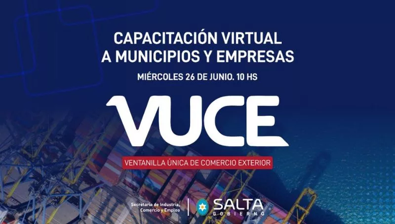 A partir de un proyecto de promoción de las exportaciones impulsado por el Gobierno Nacional con el apoyo de la Provincia, hoy desde las 10 se dictará una capacitación sobre la utilización de la Ventanilla Única de Comercio Exterior (VUCE). La actividad, que en Salta es coordinada por la Secretaría de Industria, Comercio y Empleo, está destinada a autoridades, funcionarios y empleados municipales interesados en el tema; y a representantes de empresas de toda la provincia que exporten o que deseen hacerlo en el futuro.